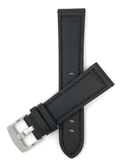 Bandini 24mm Black Italian Leather Watch Band - Racer - Padded 24mm / Black / Silver Buckle | Dial