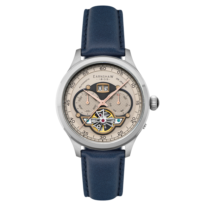 Baron Grand Date Calendar Open Heart Automatic Rose Gold / Blue Leather | Rose Gold Dial