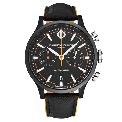 Baume & Mercier Men's 'Capeland'Chronograph Black Dial Black Leather Strap Automatic Watch 10452