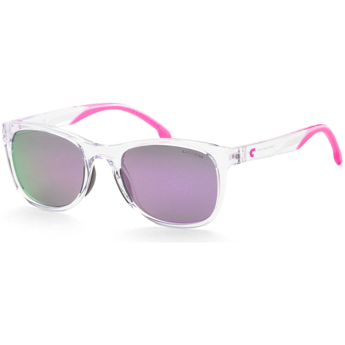 Dimensions: 52 mm x 21 mm x 145 mm - Frame Color: Crystal - Frame Shape: Rectangular - Frame Material: Plastic - Lens Color: Violet Flash - Lens Protection: 100% UV Protection - Non-Polarized