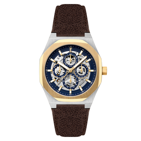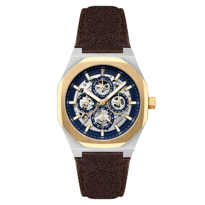 Discovery Drake Triple Calendar Skeleton Automatic Blue / Genuine Leather | Blue Dial
