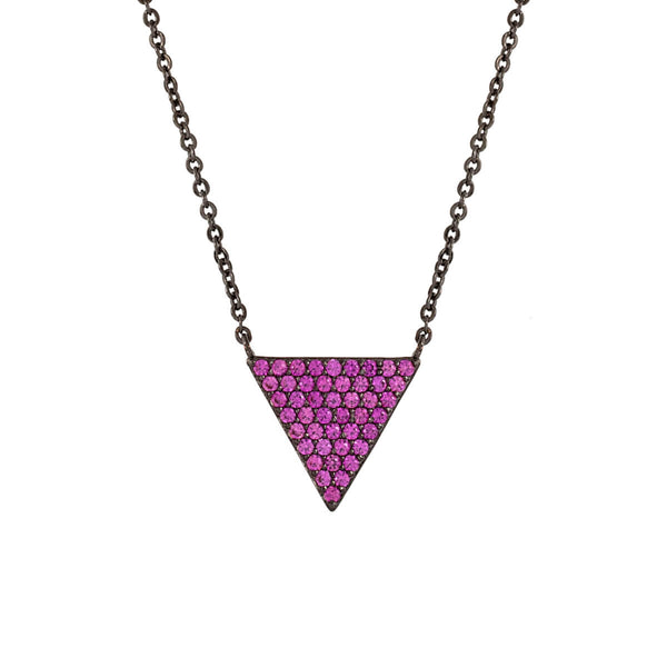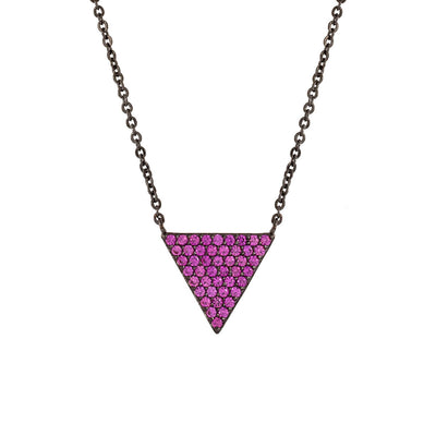 Elegant Confetti Women's 18K Black Gold Plated Pink CZ Simulated Diamond Pave Triangle Pendant Necklace 18k Black Gold