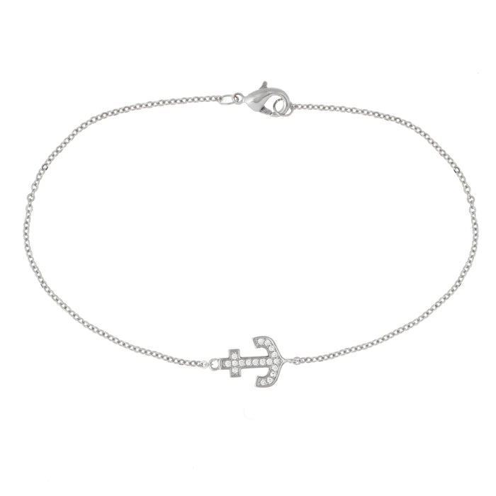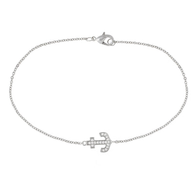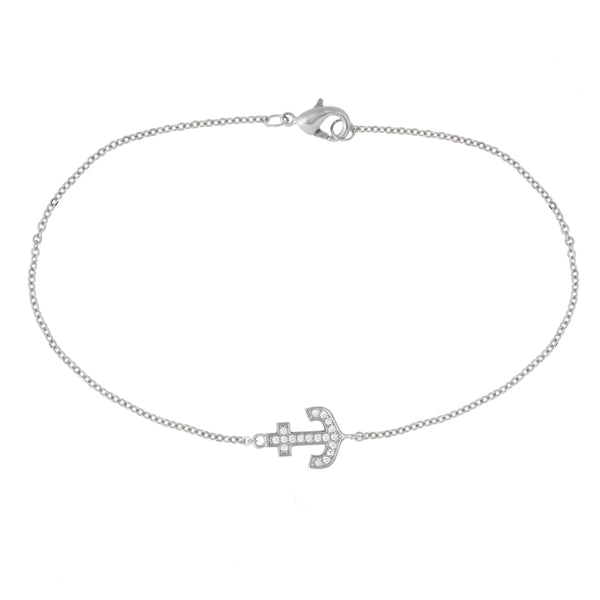 Elegant Confetti Women's 18K White Gold Plated CZ Simulated Diamond Anchor Pendant Bracelet 18k White Gold