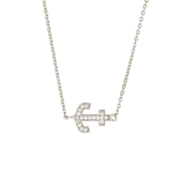 Elegant Confetti Women's 18K White Gold Plated CZ Simulated Diamond Anchor Pendant Necklace 18k White Gold