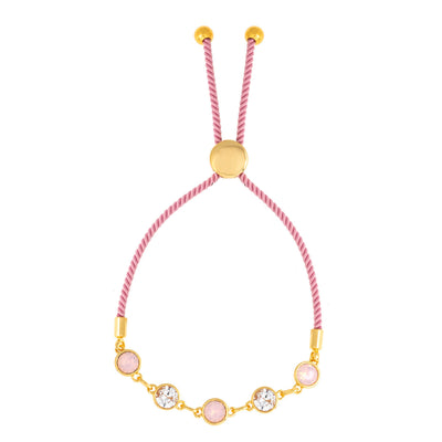 Elegant Confetti Women's 18K Yellow Gold Plated Pink and White Swarovski Crystal Adjustable Bolo Pink Rope Bracelet 18k Yellow Gold