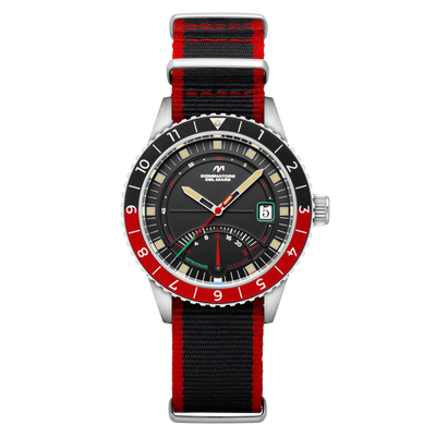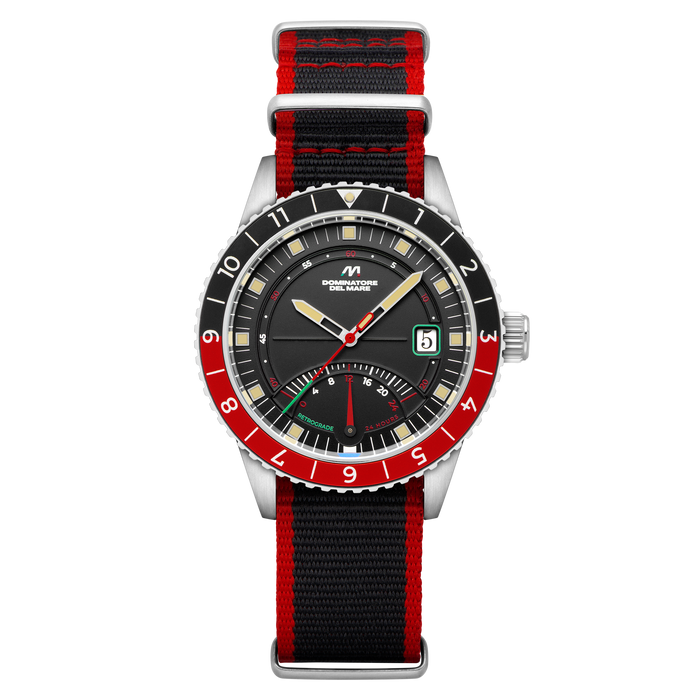 Experience the dance of time with Fano Retrograde. The timpiece is powered by a Japan quartz movement with retrograde function. The unidirectional rotating bezel boasts a two-tone color for a striking look while the sapphire lens with anti-reflective coating provides unparalleled durability. Complete your look with the unique color-matching nylon strap.