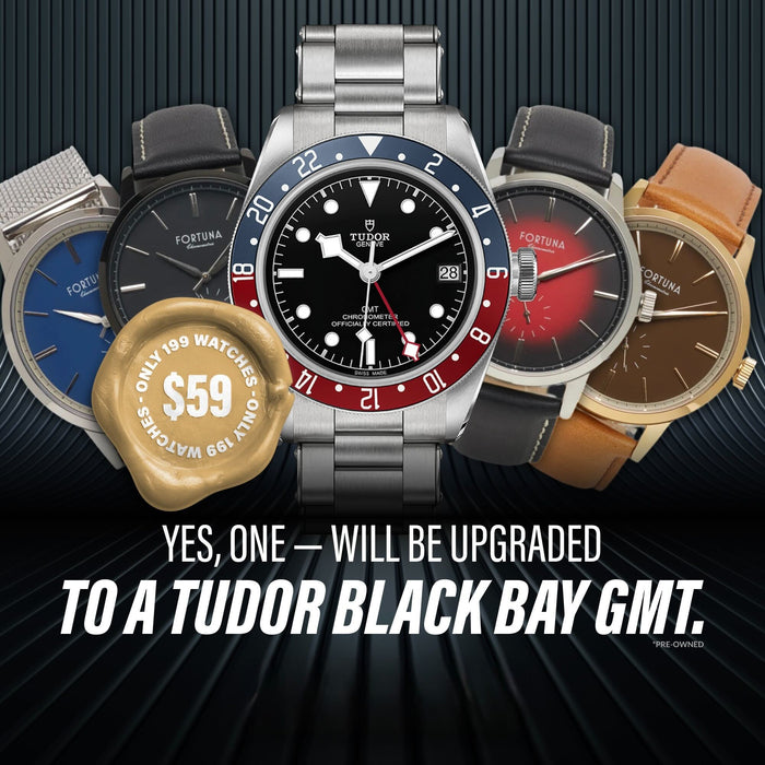 Fortuna 2 Tudor Level Up— where every purchase is guaranteed to deliver a stunning Fortuna Lincoln Watch and ONE LUCKY BUYER will walk away with an upgrade to a Pre-Owned Tudor Black Bay GMT ($4,300 Value)
