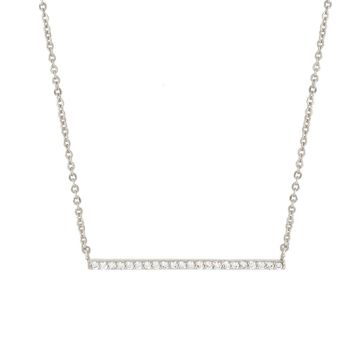An accessory for when you dont have time to accessorize. This delicate bar necklace boasts 22 pav set stones for a look thats chic and understated.