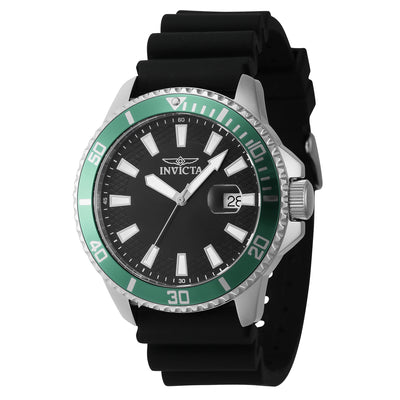 Invicta Men's Pro Diver Quartz Watch. The case is built with high-quality Stainless Steel and can withstand up to 50 m (165 feet) of water resistance. The dial is Black and protected by a Flame-Fusion Crystal. The Strap is Black Silicone with a Pin Buckle. The movement is Made in Japan Quartz. (IN-46129)