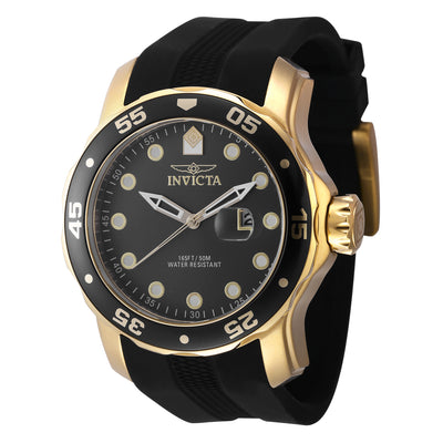 Invicta Men's Pro Diver Quartz Watch. The case is built with high-quality Stainless Steel and can withstand up to 200 m (660 feet) of water resistance. The dial is Black and protected by a Flame-Fusion Crystal. The Strap is Black Silicone with a Pin Buckle. The movement is Made in Japan Quartz. (IN-45736)