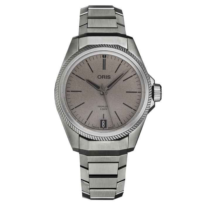 Oris Men's 'ProPilot X' Grey Dial Titanium Bracelet Automatic Watch 400 7778 7153-07 7 20 01TCL