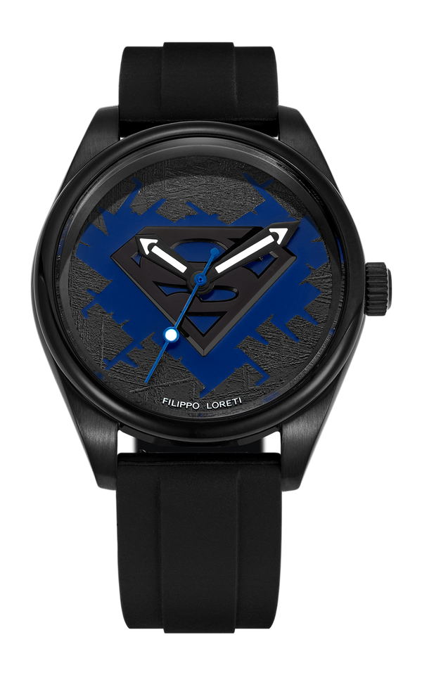 The Watches of Steel have landed: the full-blown tribute to the greatest Super Hero ever created. Superman x Filippo Loreti was conceived by a Fan of Super Heroes & Watches. Now they come to you. Forged in stainless steel, they are lit with pure Kryptonian energy. And these dials? They explode with details. Look at the Deep Pressed Meteorite Pattern. And that raised 3D S crest at the center and surrounded by the Green of the Kryptonite? Its the vision of a Fan that came to reality. And the Lume? Straight-up Kryptonite inspiration that glows green in the dark. Thats not all! Wrapped in Sapphire glass and Stainless Steel case, this watch is made to last. And Black PVD coating to symbolize the battle hardened Hero. Its 100 meters water resistant, dont fear water with it. This watch isnt a toy. This is a Real Quality watch for the Man who grew up believing in something bigger and still does. One look and youll feel it: the symbol of Memory & Hope on your wrist.Inside? NH35 Automatic movement. No batteries, just raw, self-powered movement like a hero in motion. Because Superman doesnt run on AAAs. He runs on willpower. And so does this watch. And now? You get to wear it, and power it with your wrist.