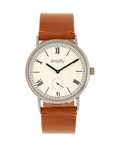 Satin Finished Metal Case Precision Japanese Quartz Movement Non-Glare Scratch-Resistant Mineral Crystal Satin Finish Dial Logo-Engraved Stainless Steel Caseback Genuine Leather Strap Logo-Engraved Stainless Steel Clasp Seconds Sub-Dial 40mm Diameter 3 ATM Water Resistance