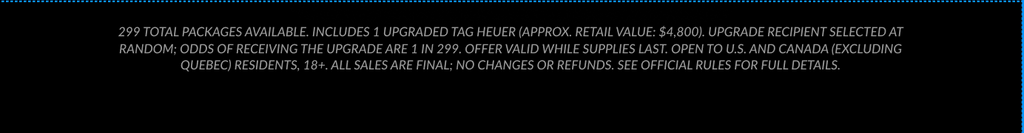 Ultimate Upgrade: 1 of 299 will receive a bonus upgrade of a TAG Heuer Aquaracer Professional 300 GMT (Approx. Value $4800)