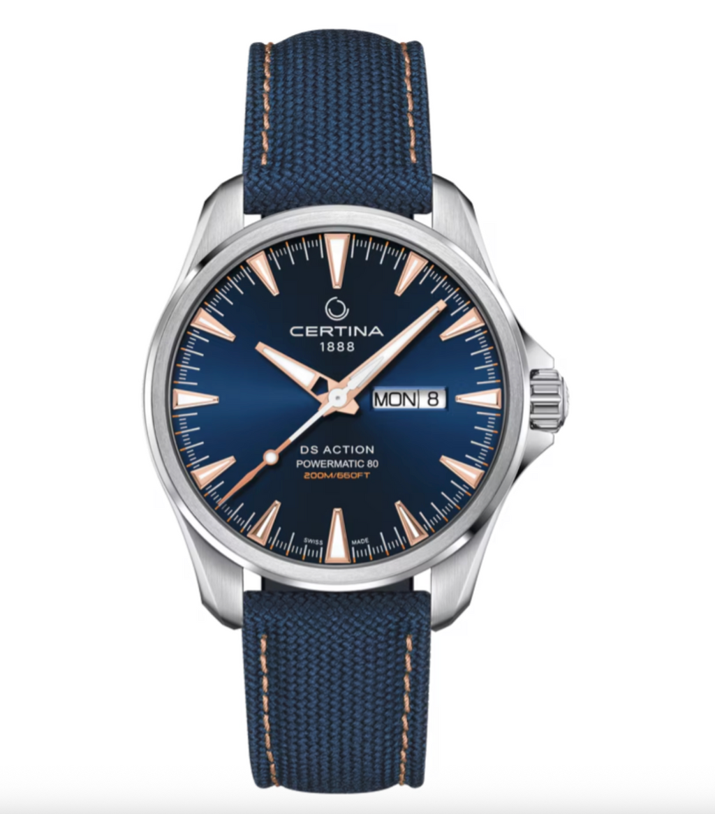 4. Certina DS Action Day Date Powermatic 80 Blue dial-$810 (Sku:C0324301804101)