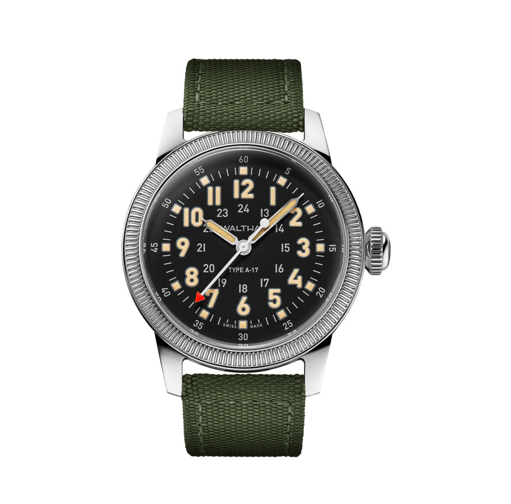 5. Waltham A17 Pilot Black dial on leather-$1,450.00 (Sku:WA17.M100.SS.BLA)