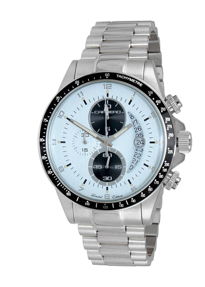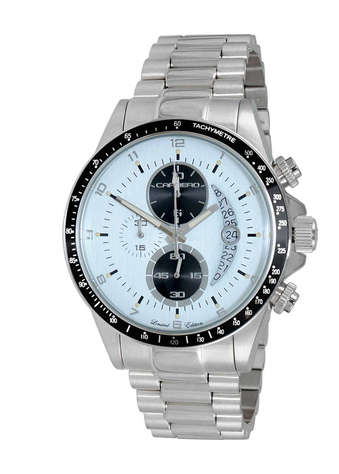 Men's Swiss-Ronda Chronograph Mov't, Light Gray-Date Dia, Stainless steel case and band.