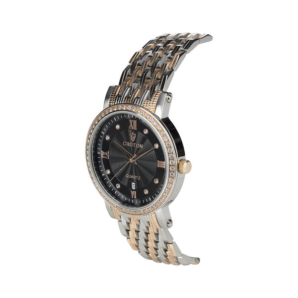 West Village Sellita SW200 Silver/Black,Two toned SS IPYG band | Black Dial