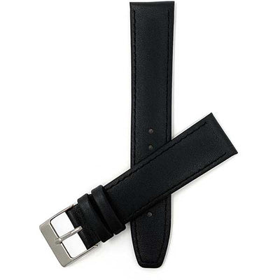 Black 22mm Classic Slim Leather Watch Band, Many Colors with Stitch, Silver Buckle