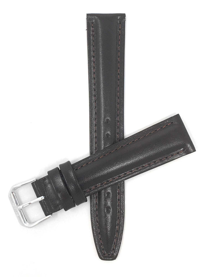 Bandini 18mm Brown Italian Leather Watch Band - Silver Buckle - Classic - Padded