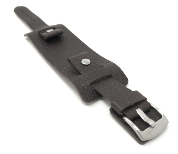 425 | 20mm Brown Mens Leather Band Wrist Cuff, Rectangular Bund Strap 20mm / Brown / Silver Buckle |  Dial
