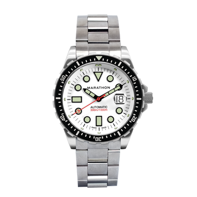 Originally issued to Canadian Search and Rescue (SAR) Techs in the early 2000s, the SAR-D marked the beginning of Marathons SAR Dive watches. Building upon that legacy, the 41mm OSAR-D was re-engineered and launched in 2024 with upgraded MaraGlo illumination for enhanced visibility, larger indices for quick reading, and an improved cyclops date window. Yet not all operators, nor missions, are built the same. A 46mm size was added to the lineup (in both dial colours) to accommodate larger wrist sizes. All OSAR-D models feature Incabloc shock protection and Sellita automatic movements. Notably, the 46mm OSAR-D is the first of the SAR series to be equipped with SW600 b movement, renowned for its 62-hour power reserve. Built for durability and precision, the OSAR-D is mission-ready. Includes Stainless Steel Bracelet.