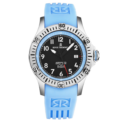 Revue Thommen Men's 'Air speed' Black Dial Blue Rubber Strap Automatic Watch 16070.4735