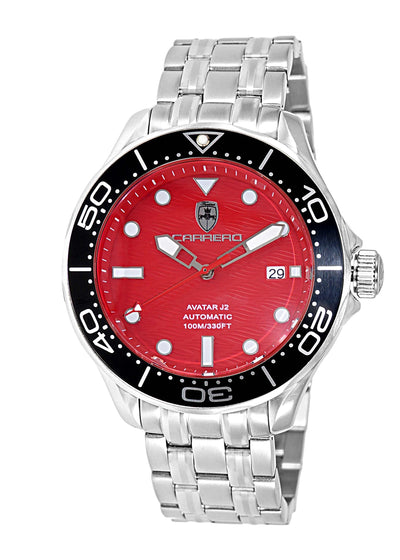 Men's NH-35 24-Jewels Automatic Movement, Red Date - Dial, Black Bezel, Stainelss Steel case and Band