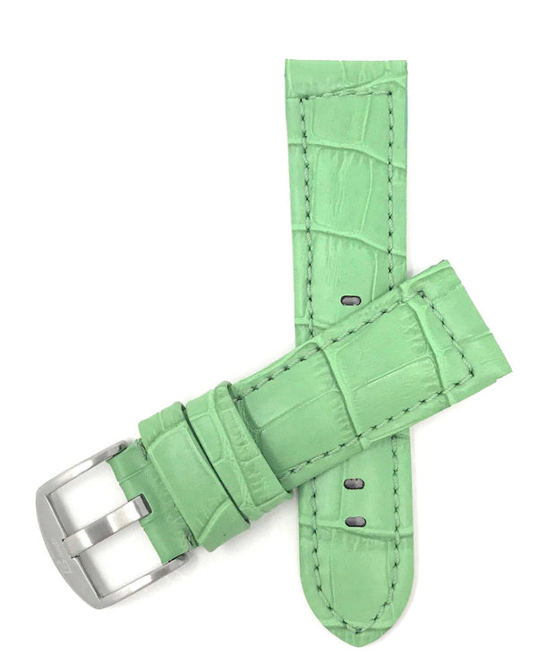 Bandini 18mm Green Italian Leather Watch Band - Silver Buckle - Alligator Pattern - Padded