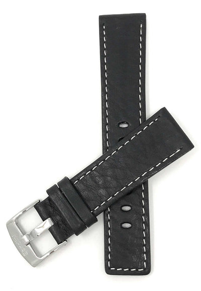 Bandini 22mm Black Italian Leather Watch Band - Classic - White Stitch - Semi-Padded 22mm / Black / Silver Buckle | Dial
