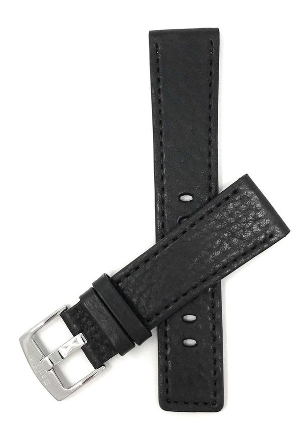 Bandini 24mm Black Italian Leather Watch Band - Classic - Semi-Padded 24mm / Black / Silver Buckle |  Dial