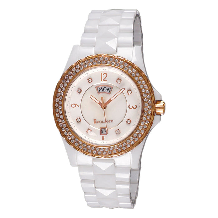 Swiss Quartz Movement, High-Tech White Ceramic case and band, White MOP Dial with Swarovski Markers