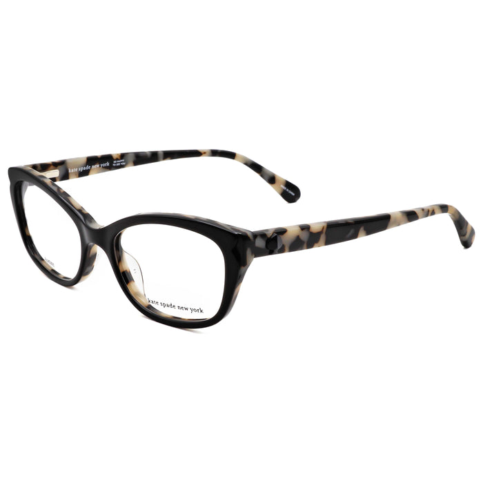 Dimensions: 49 mm x 17 mm x 140 mm - Frame Color: Black White Havana - Frame Shape: Cat-Eye - Frame Material: Acetate - Lens Color: Demo Lens