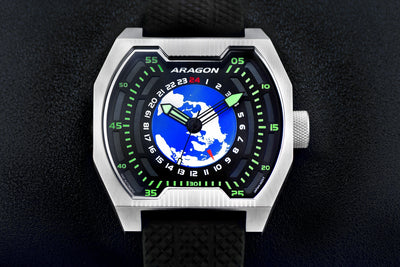 Wing Liang’s revolutionary new Concept S Automatic is an inspired timepiece whose design contains echoes of spacecraft design. Powered by the newest Japanese NH34 GMT automatic movement and modified to a world map superluminova GMT dial.