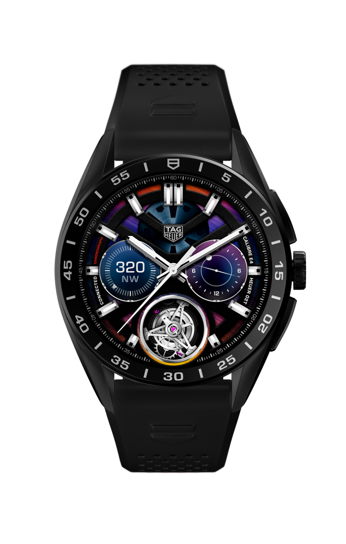 Taking watchmaking to new heights, this TAG Heuer Connected Watch offers a seamless blend of luxury and performance. The chronograph style 45mm case is crafted from ultra-light titanium grade 2, with a matt sandblasted DLC finishing.