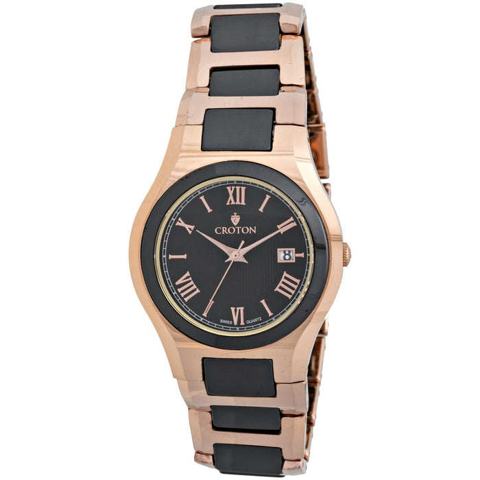 Croton Men's "Millennium" Tungsten & Ceramic Swiss Quartz Watch with Date rose/ceramic/tungsten | Black Dial