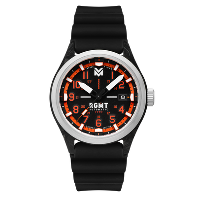 Designed for endurance and built for mission-grade performance, the Defender pushes boundaries with its full forged carbon case at 43mm delivering extreme lightness and formidable strength in one. Powered by Japanese automatic movement and protected by 30 ATM water resistance, the Defender marks the unmistakable attitude of RGMT timepieces.