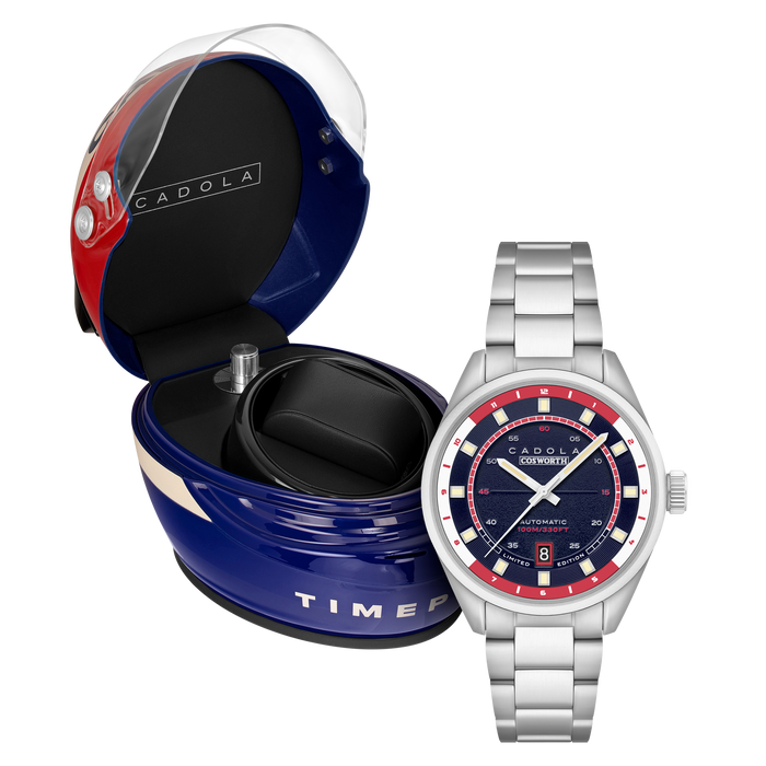 This unique limited edition Cosworth watch comes with a unique helmet shaped watch winder for the true motorsport fan. In a world where the worlds of precision and timing come together, this is a package of substance style and detail.
