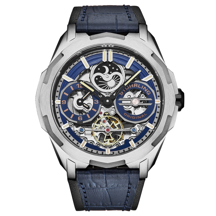 Dual Time Automatic Navigator 46mm Skeleton Blue/ Leather | Blue Dial