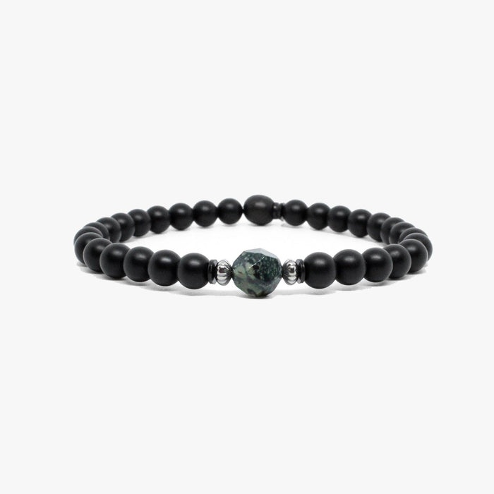Starcut Green Jasper, Black Onyx, Sterling Details. Bead Size: 6mm
