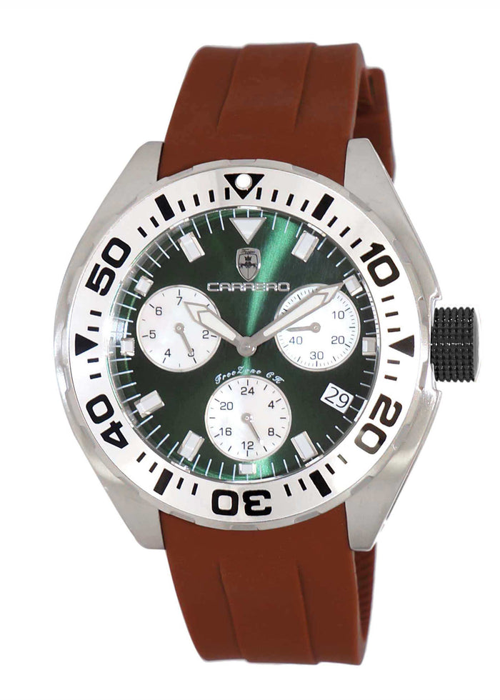 TORINO CARRERO FreeZone-CH, Men's Swiss Multi-Functiom Ronda X30 Movement, Green Dial - Silver Bezel-IP-Black Crown, Brown Silicon Band