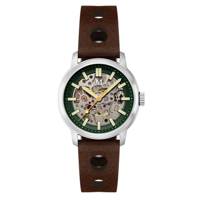 Featuring a mesmerizing skeleton automatic movement and an exhibition caseback, the Rally Automatic invites you to witness the heartbeat of precision craftsmanship from every angle. Housed in a sleek 40mm stainless steel case and paired with a genuine leather rally strap, its design pays homage to the golden era of motorsport.