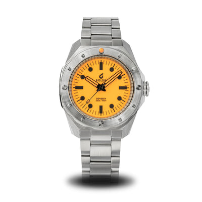 Aetherfire takes its name from the glow found near hydrothermal vents deep underwater. The dial glows fully in orange using Swiss SuperLuminova, giving it high visibility in the dark. Its bright, clear, and consistent. The case is made of 316L stainless steel with brushed and polished finishing. Its water-resistant to 300 meters and comes with an integrated bracelet. Total weight is 180 grams solid, but balanced on the wrist.