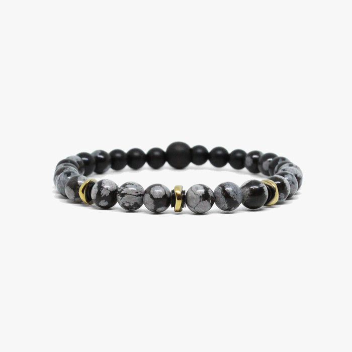 Snowflake Obsidian and Gold Hematite Bracelet. Made by Hand in the USA