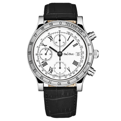 Paul Picot Men's 'Telemeter' Chronograph White Dial Black Leather Strap Automatic Watch P7004A20.113