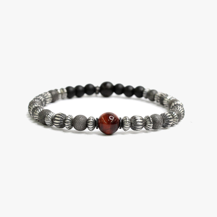 Textured Sterling Beads, Tiger Eye, Red Tiger Eye M (7.25" Wrist) |  Dial
