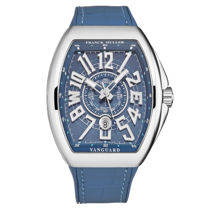 Franck Muller Men's 'vanguard Mariner' Blue Dial Blue Rubber/Leather Strap Automatic Watch 45SCYACTMARNEBU