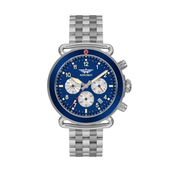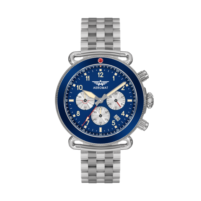 The VDN Blue Steel Link presents a modern take to this iconic chronograph. It features Super Luminova filled hands and indexes on a blue dial. Water resistant at 10ATM, its made of stainless steel to withstand rugged conditions.