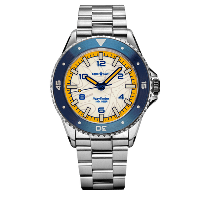 The Wayfinder Lume Dial comes in a smaller size, has increased water resistance of 300 meters, and comes on a steel bracelet. The Wayfinder Diver 40 is ready for adventure and can light up the night.
