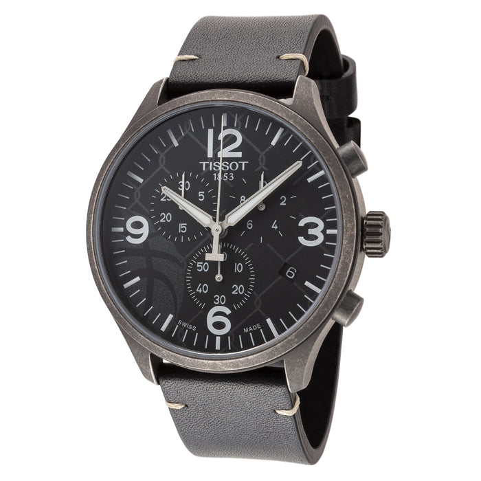 Tissot Men's XL 3x3 Street Basketball Quartz Watch. The case is built with high-quality Stainless Steel and can withstand up to 100 m (330 feet) of water resistance. The dial is Black and protected by a Sapphire Crystal Scratch Resistant. The Strap is Black Leather with a Pin Buckle. The movement is Swiss-Made Quartz. (T1166173606700)